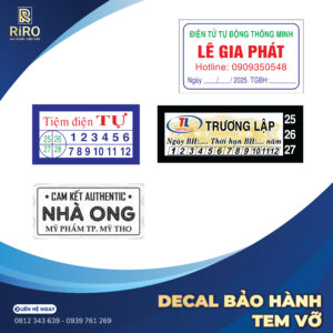Decal bảo hành (tem vỡ) là loại tem niêm phong chỉ dùng một lần, dễ vỡ khi bóc, giúp chống tháo gỡ và bảo vệ quyền lợi bảo hành cho sản phẩm hiệu quả.
