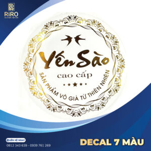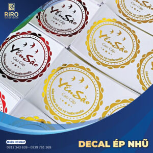 Decal ép nhũ là tem nhãn cao cấp với hiệu ứng ánh kim sang trọng, giúp tăng độ nhận diện thương hiệu và làm nổi bật sản phẩm chuyên nghiệp.