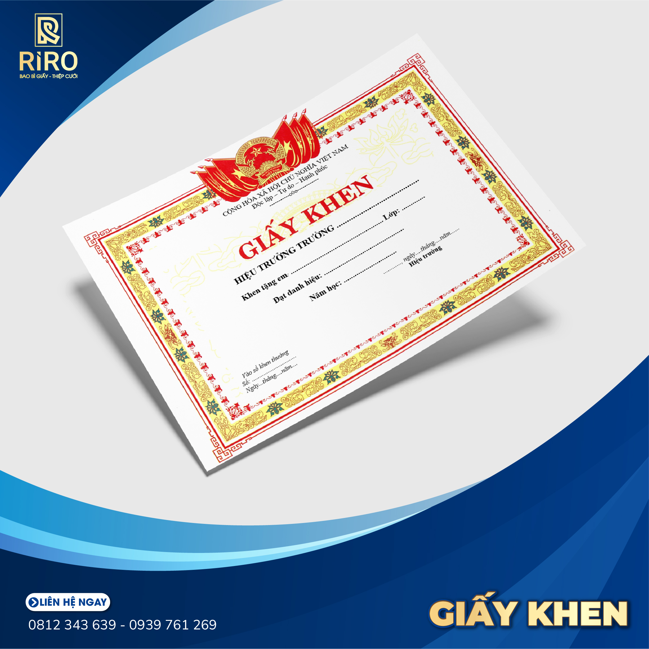 Giấy khen là biểu trưng ghi nhận thành tích, sự cống hiến, nỗ lực của cá nhân hoặc tập thể trong học tập, lao động, phong trào hoặc tổ chức. Với dịch vụ thiết kế và in giấy khen theo yêu cầu, chúng tôi cam kết mang đến những sản phẩm chất lượng cao, mẫu mã chuẩn quy định hoặc thiết kế riêng theo nhận diện thương hiệu.